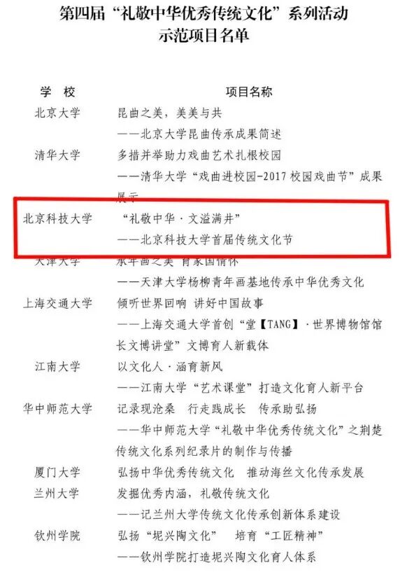 将传统文化教育融入学校综合改革方案和人才培养,建立完善的文化素质教育体系。开设“中国科学技术史”“中国传统文化与现代生活”“沟通与交流”等100余门人文素质类课程,为学生提供传统文化学习的“主阵地”。