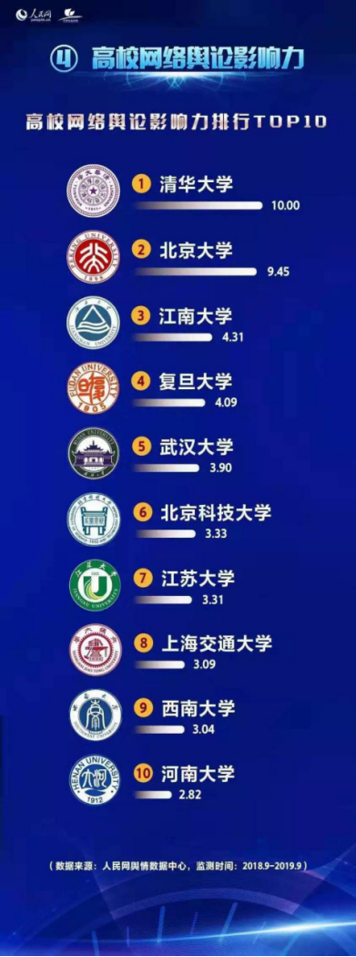 2019年,人民网发布高校网络舆论影响力,我校位居全国高校第六。